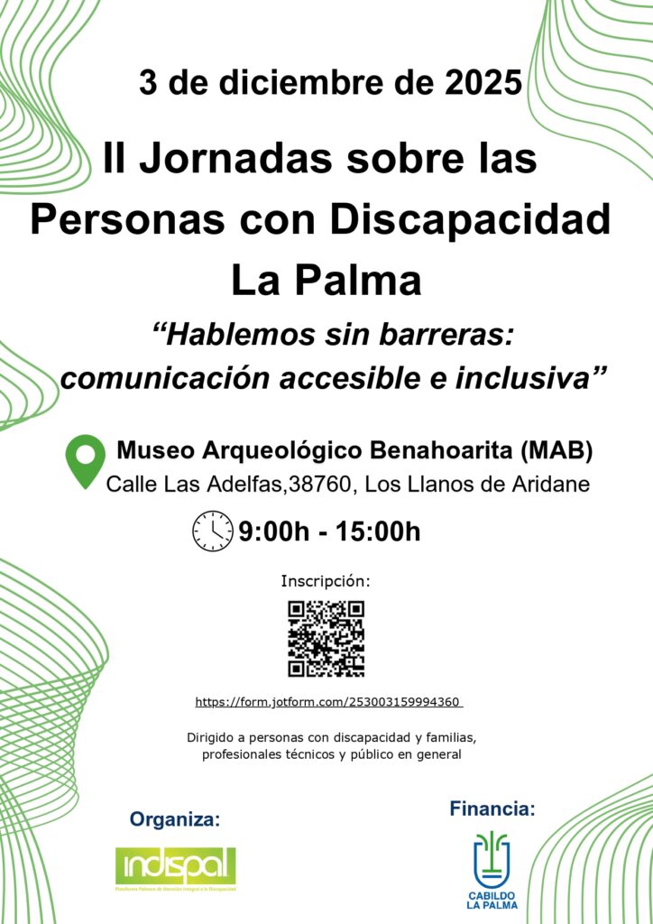 “Hablemos sin barreras: comunicación accesible e inclusiva” será el eje central del encuentro el próximo 3 de diciembre en Los Llanos de Aridane que organizan INDISPAL y el Cabildo de La Palma.